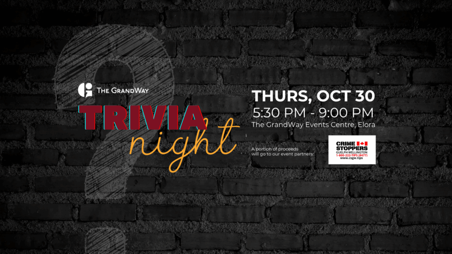 Trivia Night is BACK! Think you’re the smartest in Centre Wellington? Prove it! Join us on Thursday, October 30, at The GrandWay Events Centre in Elora.